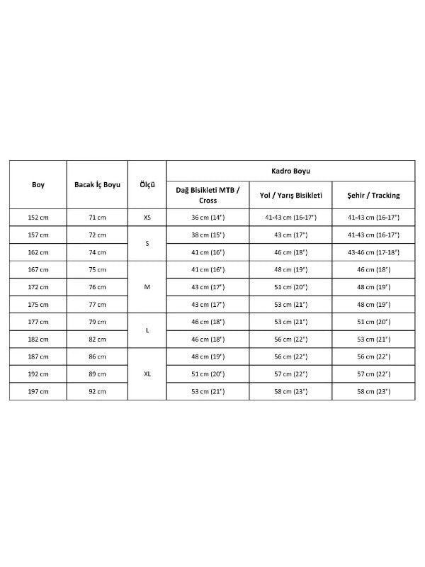 | Q | WHEEL SIZE | TEKER BOYU | 26" | 27,5" | 29" |
